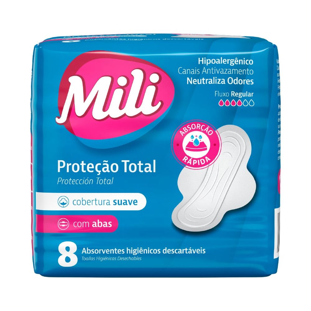 Kit c/2 Absorvente Mili P Total Suave C/Abas 8 Unidades
