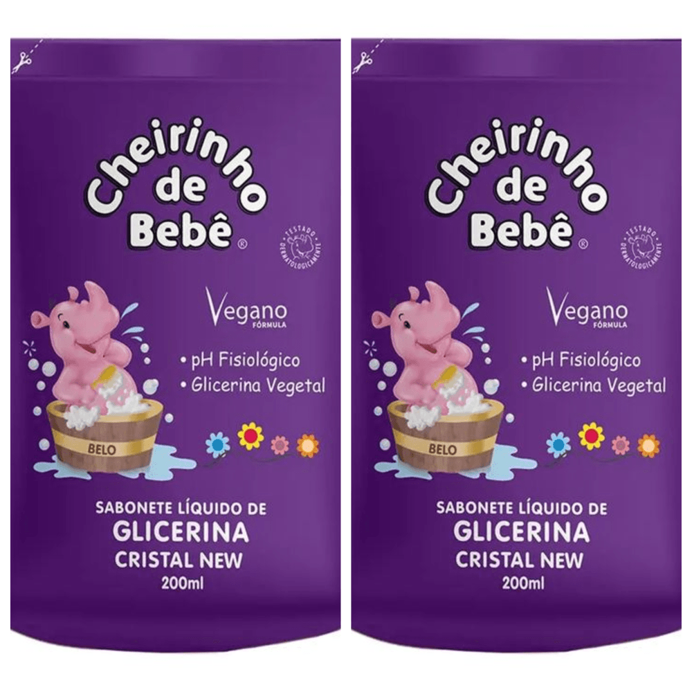 Kit c/2 Sabonetes Liquido Infantil Cheirinho De Bebê Refil 200ml Cristal