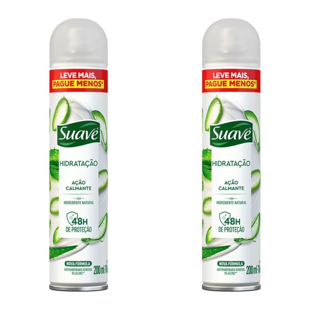 Kit c/2 Unidades de Desodorante Antitranspirante Aerossol Hidratação 200ml Suave