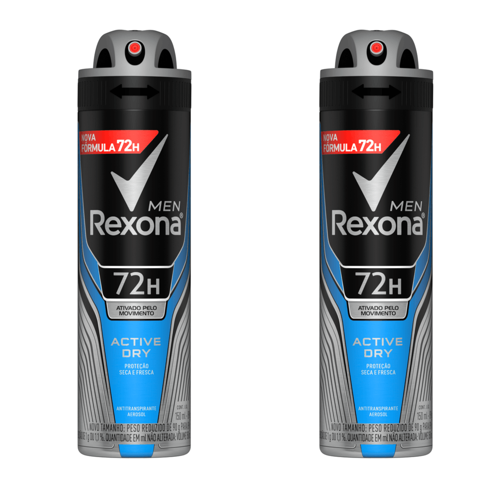 Kit c/2 Unidades de Desodorante Rexona Aerosol 150ml Men Active Dry