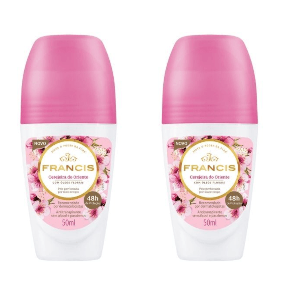 Kit c/2 Unidades de Desodorante Rollon Francis Hydrata 50ml Cerejeira Do Oriente