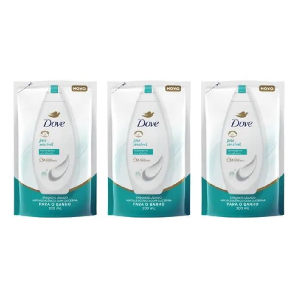 Kit c/3 Sabonetes Líquido Dove Refil 200ml Pele Sensível