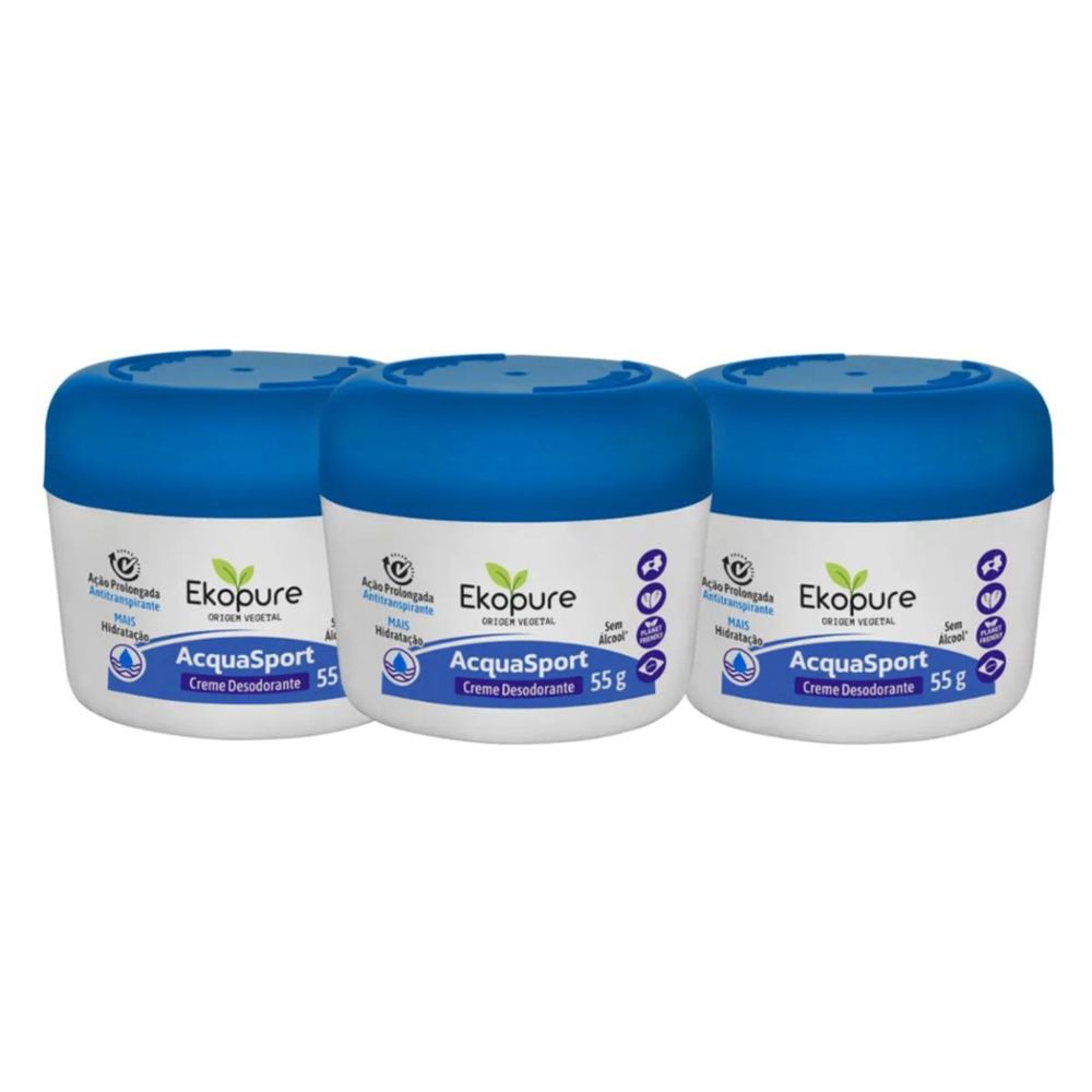 Kit c/3 Unidades de Desodorante Creme Ekopure 55g Acquasport