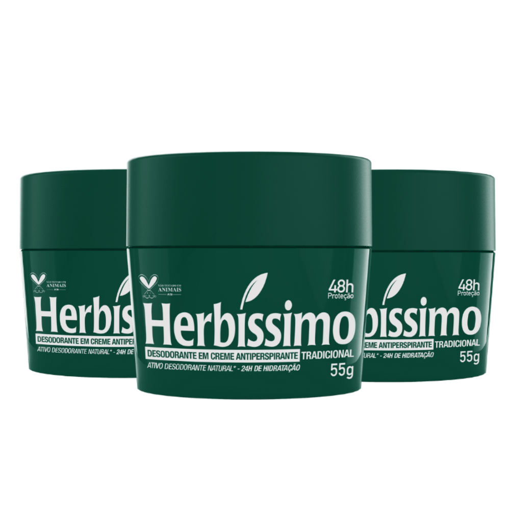 Kit c/3 Unidades de Desodorante Creme Herbissimo 55g Tradicional