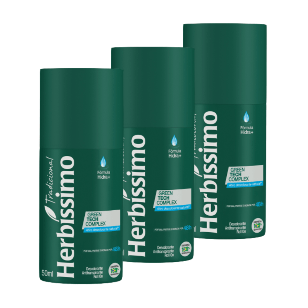 Kit c/3 Unidades de Desodorante Rollon Herbissimo 50ml Tradicional