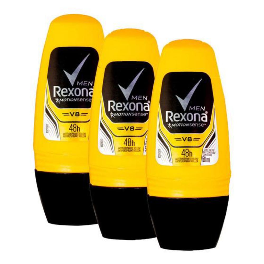 Kit c/3 Unidades de Desodorante Rollon Rexona Compacto 30ml V8