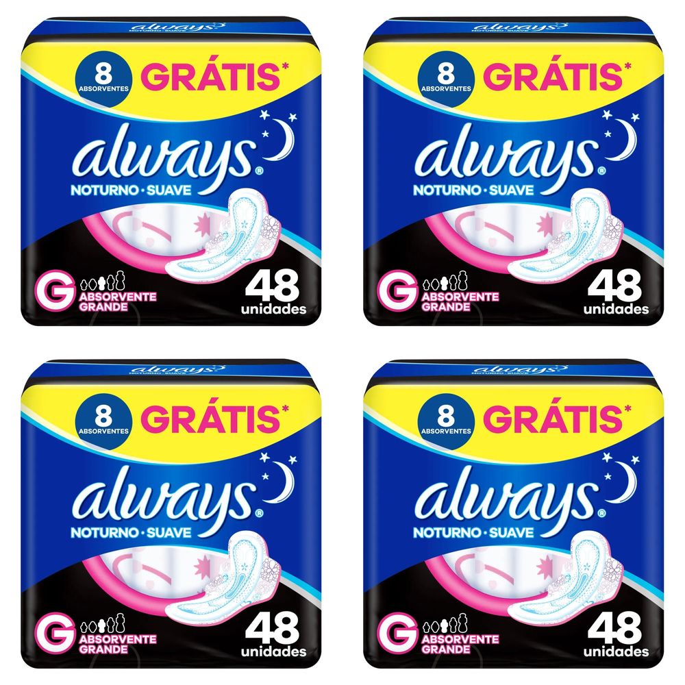 Kit c/4 Absorvente Always Noturno Suave ”G” c/48 Unidades cada