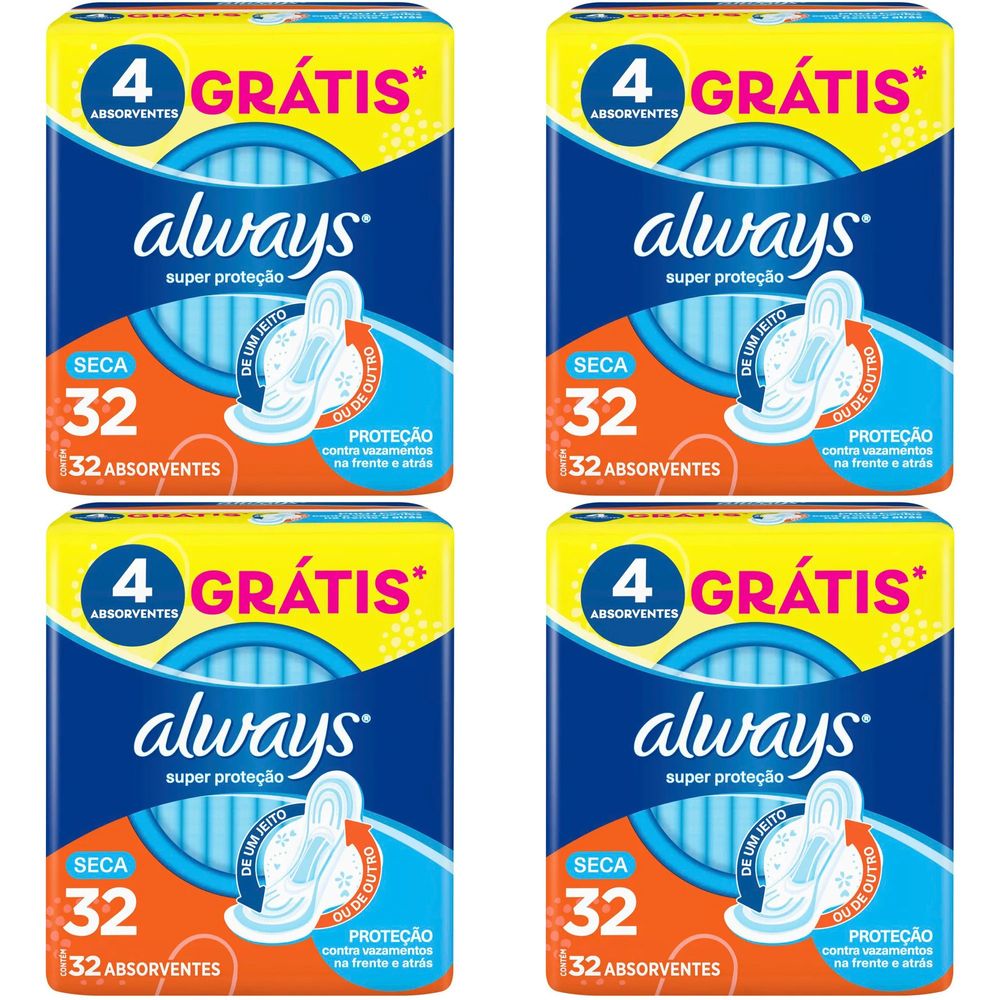 Kit c/4 Absorvente Básico Malha Seca C/Abas Always Simples 32 Unidades cada