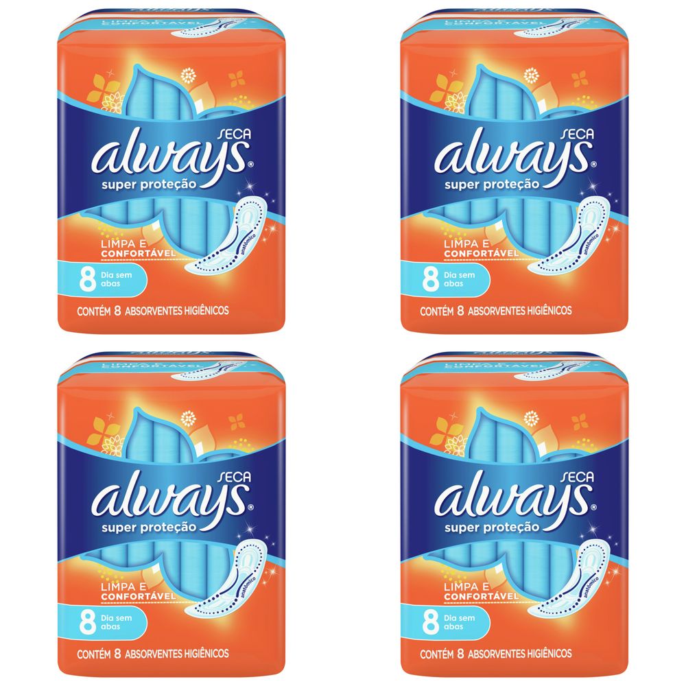 Kit c/4 Absorventes Básico Malha Seca Sem Abas Always Simples c/8 Unidades cada