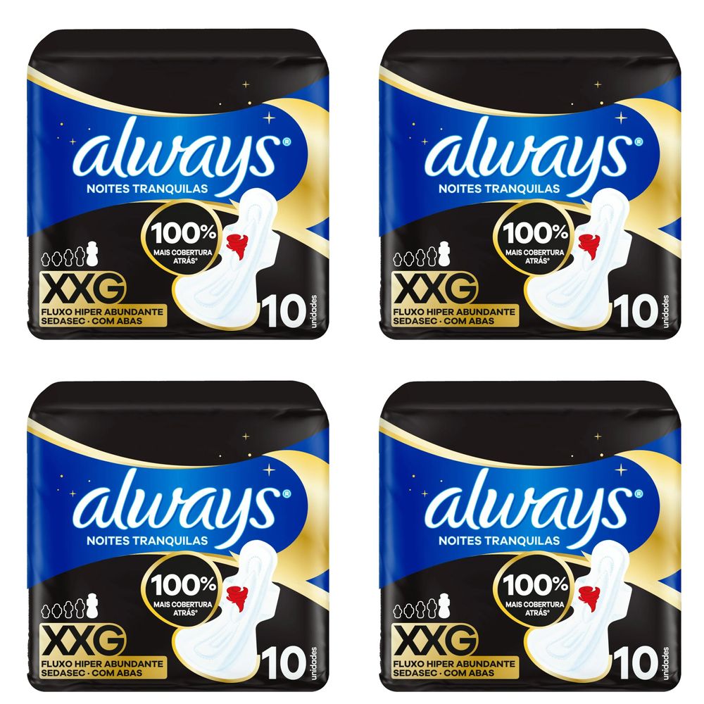 Kit c/4 Absorventes Cobertura Suave Noturno Com Abas 40Cm Always Simples c/10 Unidades cada