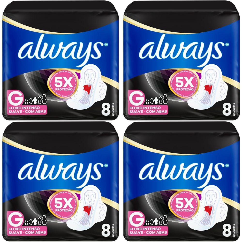 Kit c/4 Absorventes Cobertura Suave Noturno Com Abas Always Simples 8 Unidades