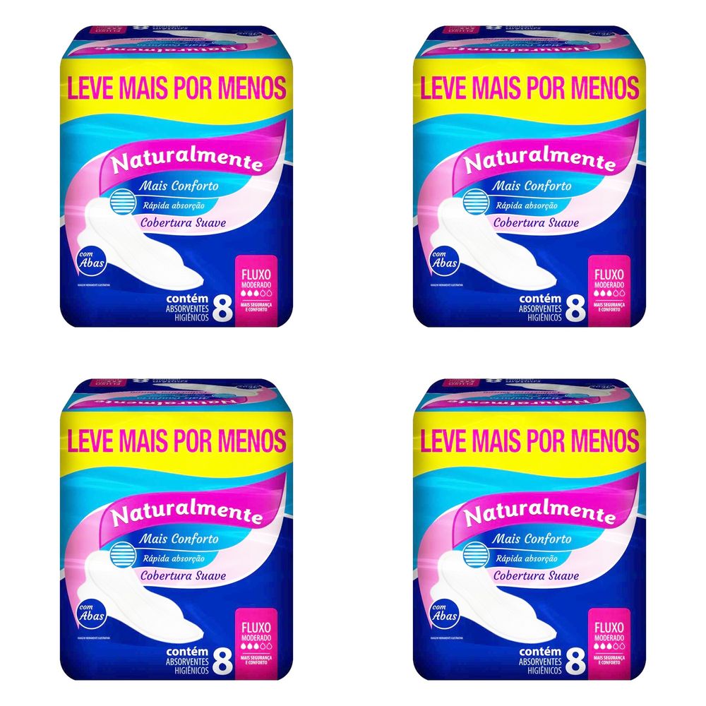 Kit c/4 Absorventes Naturalmente Mais Com Abas c/8 Unidades cada