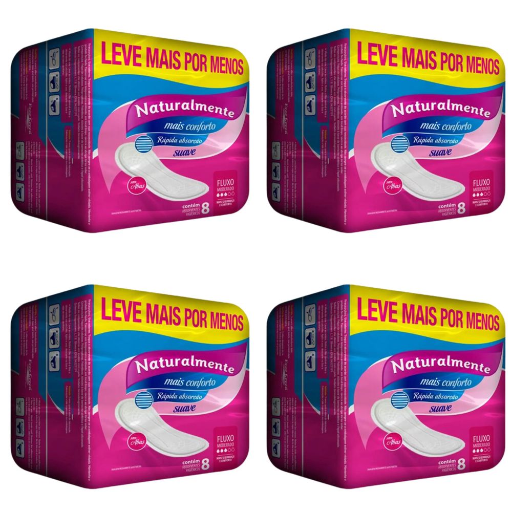 Kit c/4 Absorventes Naturalmente Mais Conforto Sem Abas c/8 Unidades cada