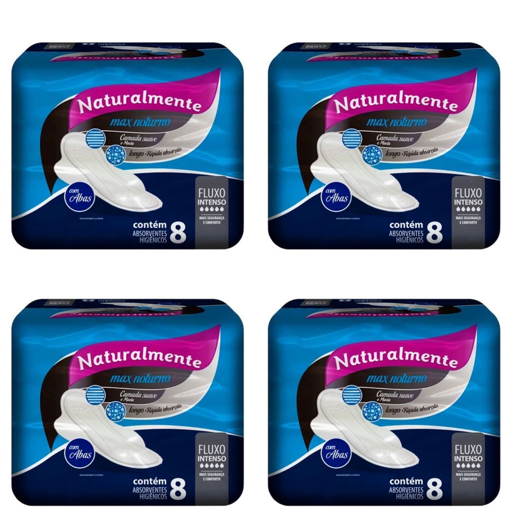 Kit c/4 Absorventes Naturalmente Max Noturno S/Abas 8 unidades cada