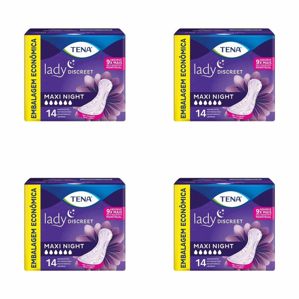 Kit c/4 Absorventes Tena Lady Discreet Maxi Night c/14 Unidades cada