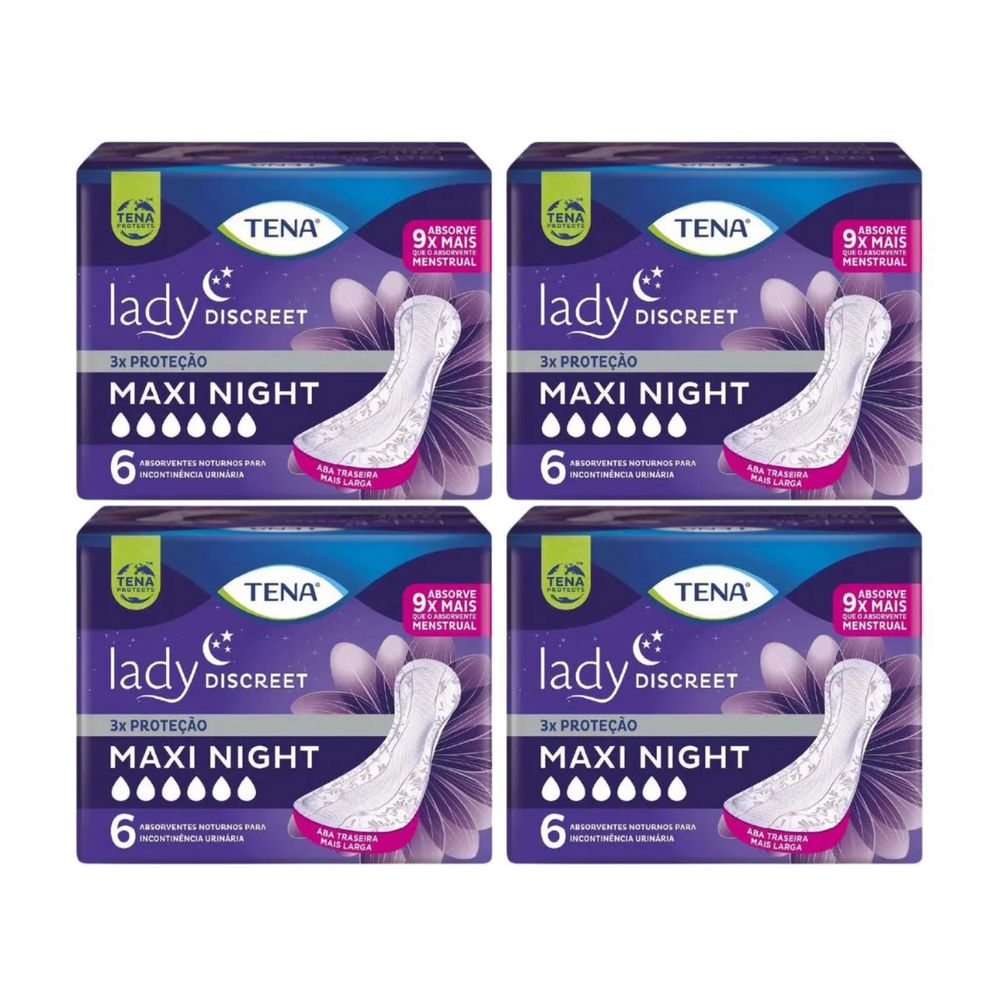 Kit c/4 Absorventes Tena Lady Discreet Maxi Night c/6 Unidades cada