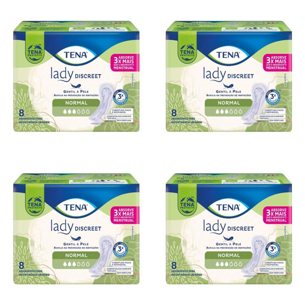 Kit c/4 Absorventes Tena Lady Discreet Normal c/8 Unidades cada