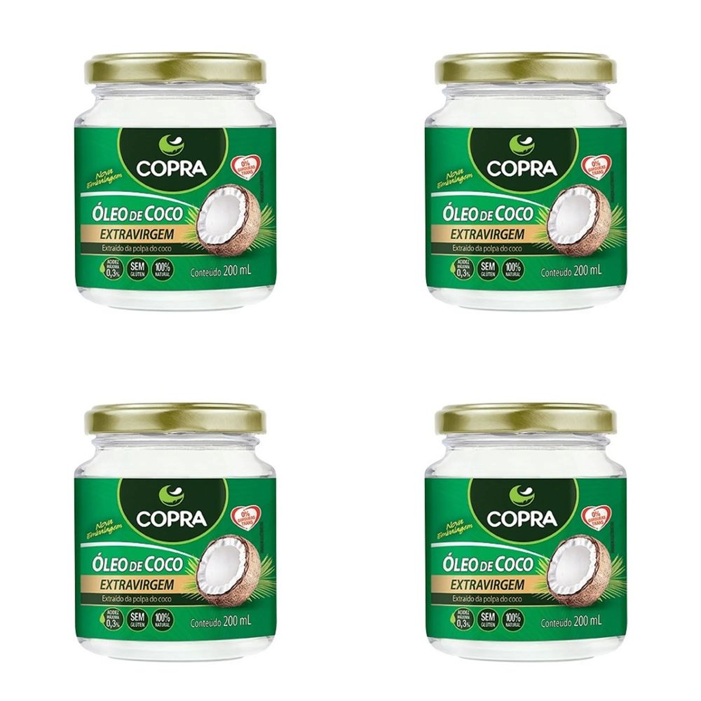 Kit c/4 Óleos de Coco Extravirgem Copra Vidro 200ml cada
