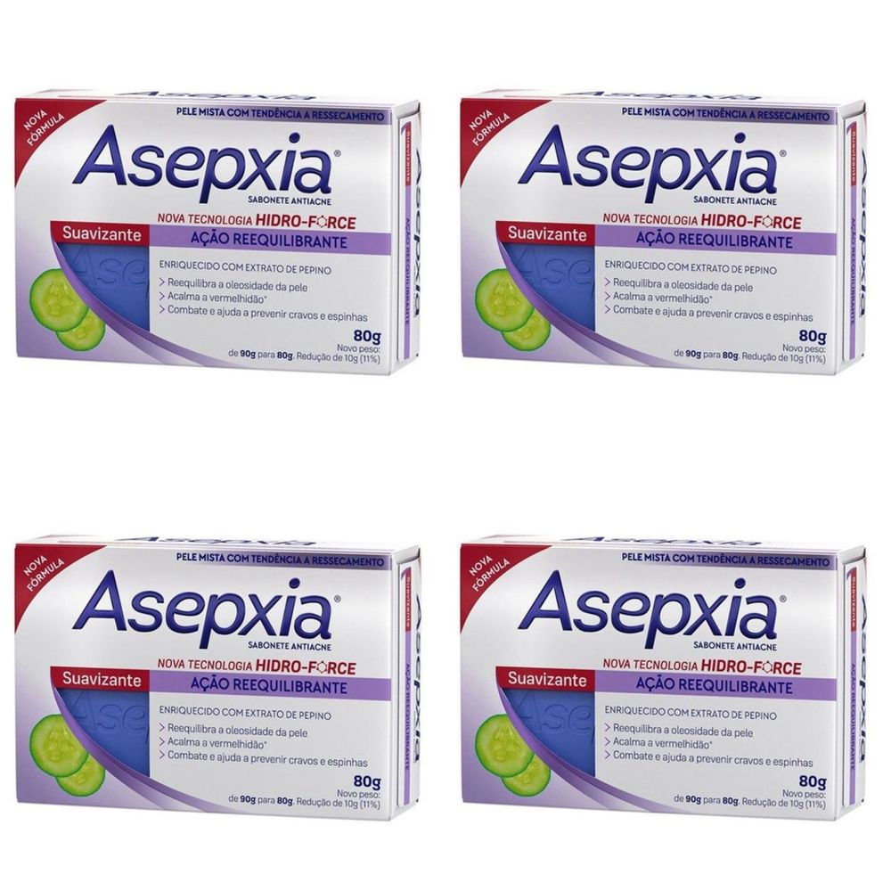 Kit c/4 Sabonete Asepxia Barra 80g Suavizante/Cremoso