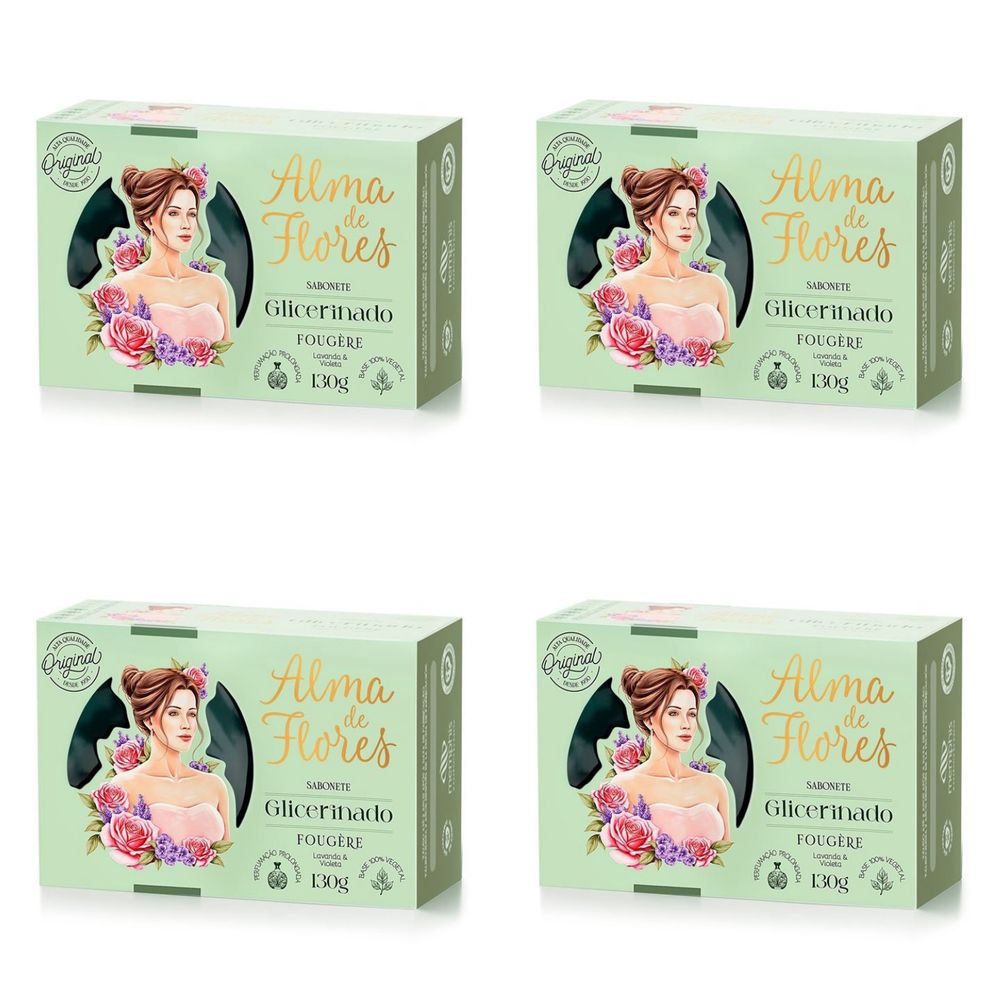 Kit c/4 Sabonetes Alma De Flores Glicerinado 130g Fougere