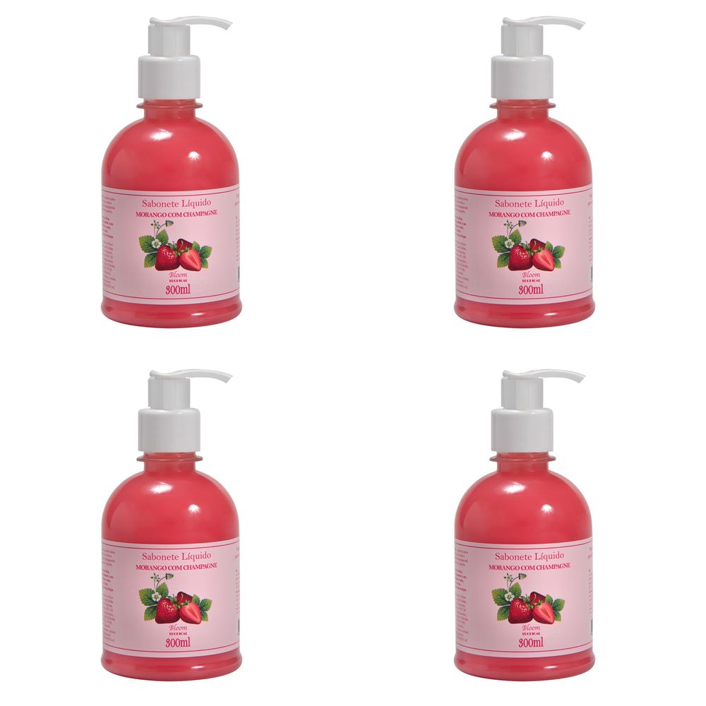 Kit c/4 Sabonetes Líquido Aromatica Bloom Morango C/Champa 300ml cada