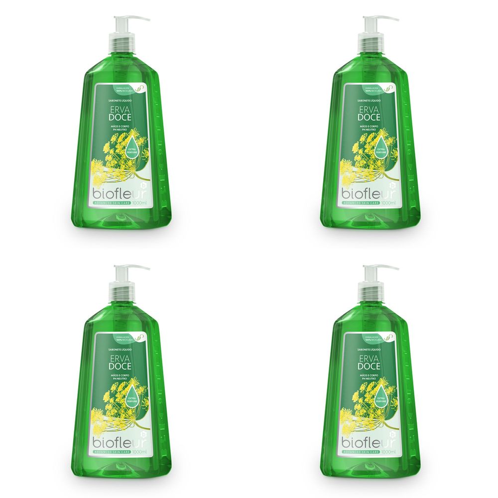 Kit c/4 Sabonetes Líquido Biofleur 1L Hid. Erva Doce