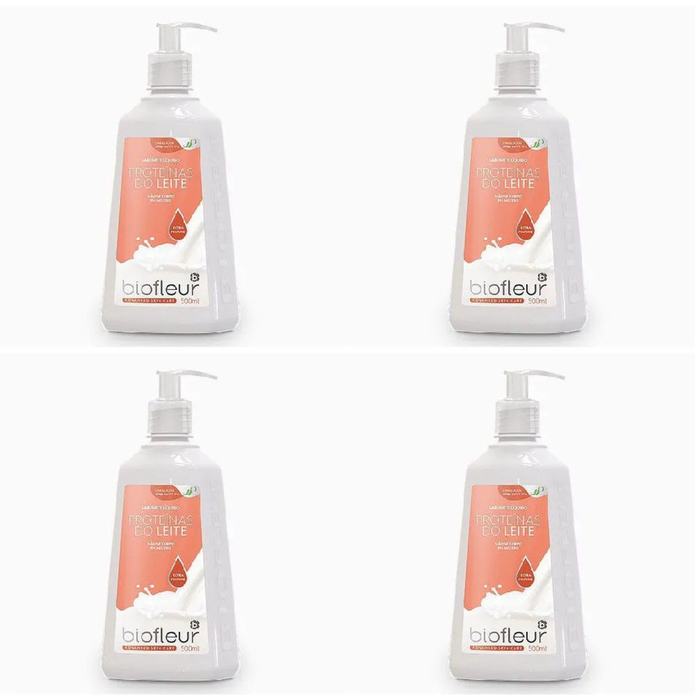 Kit c/4 Sabonetes Líquido Biofleur Proteina Do Leite 500ml cada
