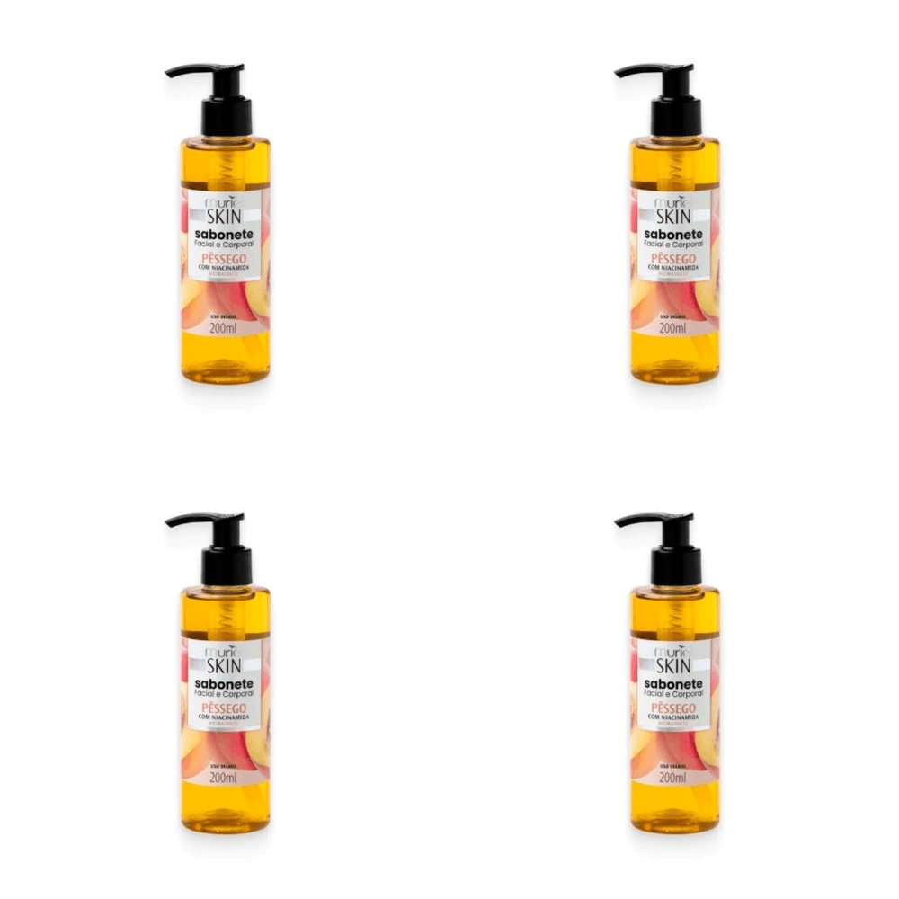 Kit c/4 Sabonetes Líquido Facial Corporal Muriel Skin Pêssego 200ml