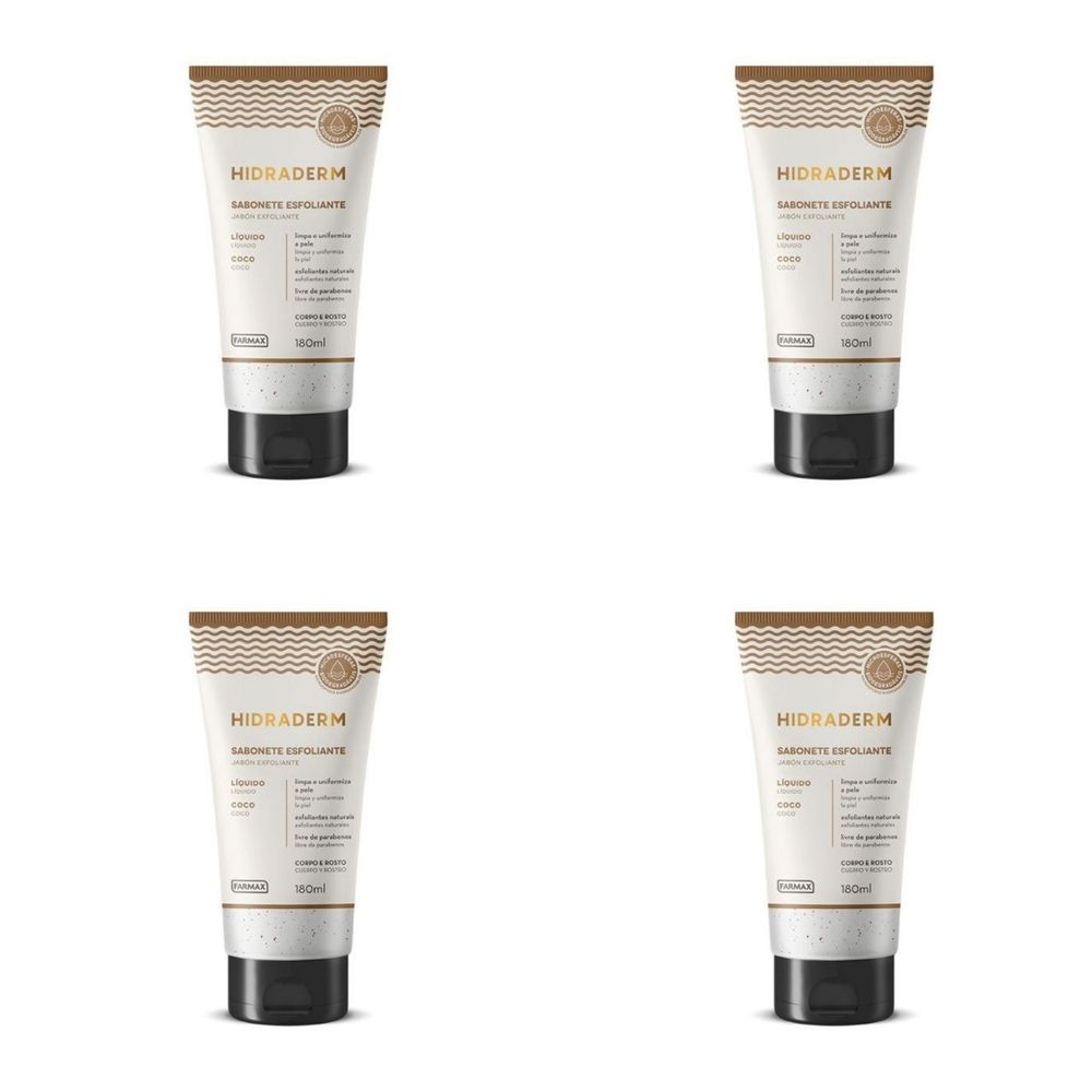 Kit c/4 Sabonetes Líquido Hidraderm Esfoliante 180ml Coco