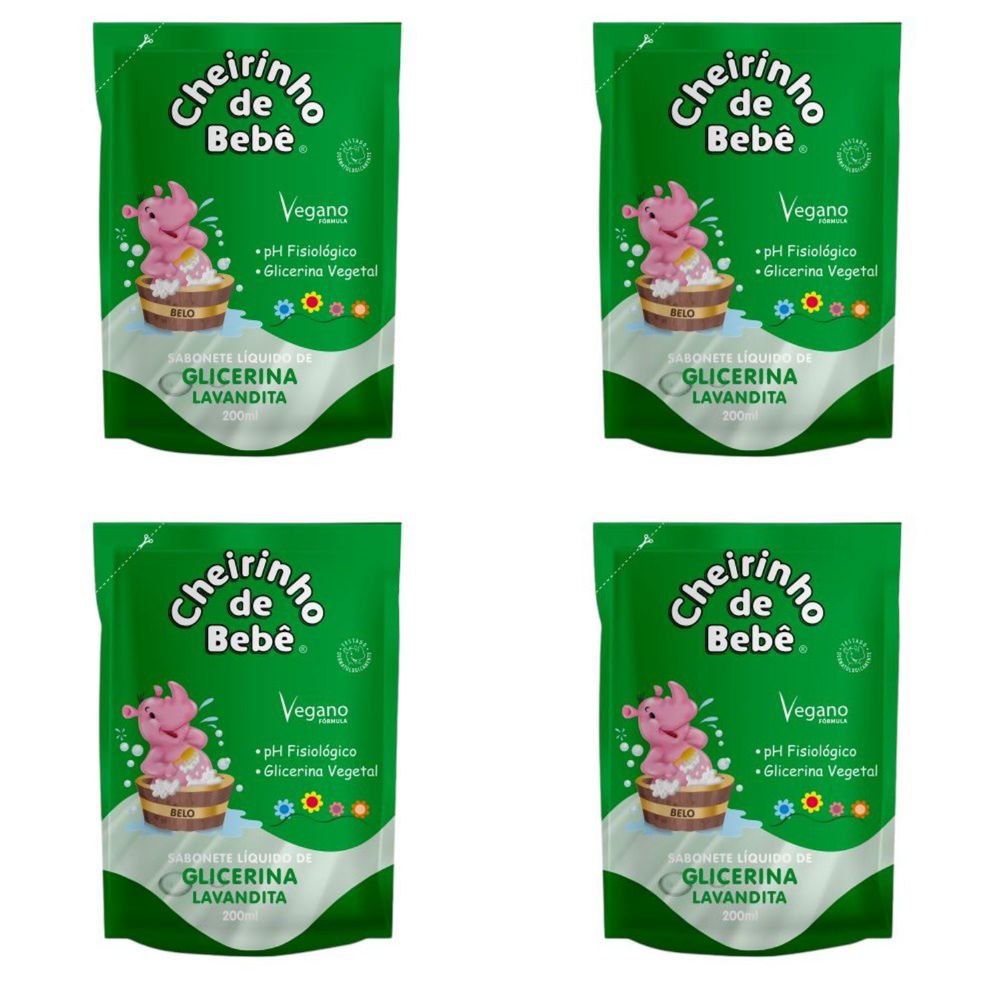 Kit c/4 Sabonetes Liquido Infantil Cheirinho Bebê Refil 200ml Lavanda