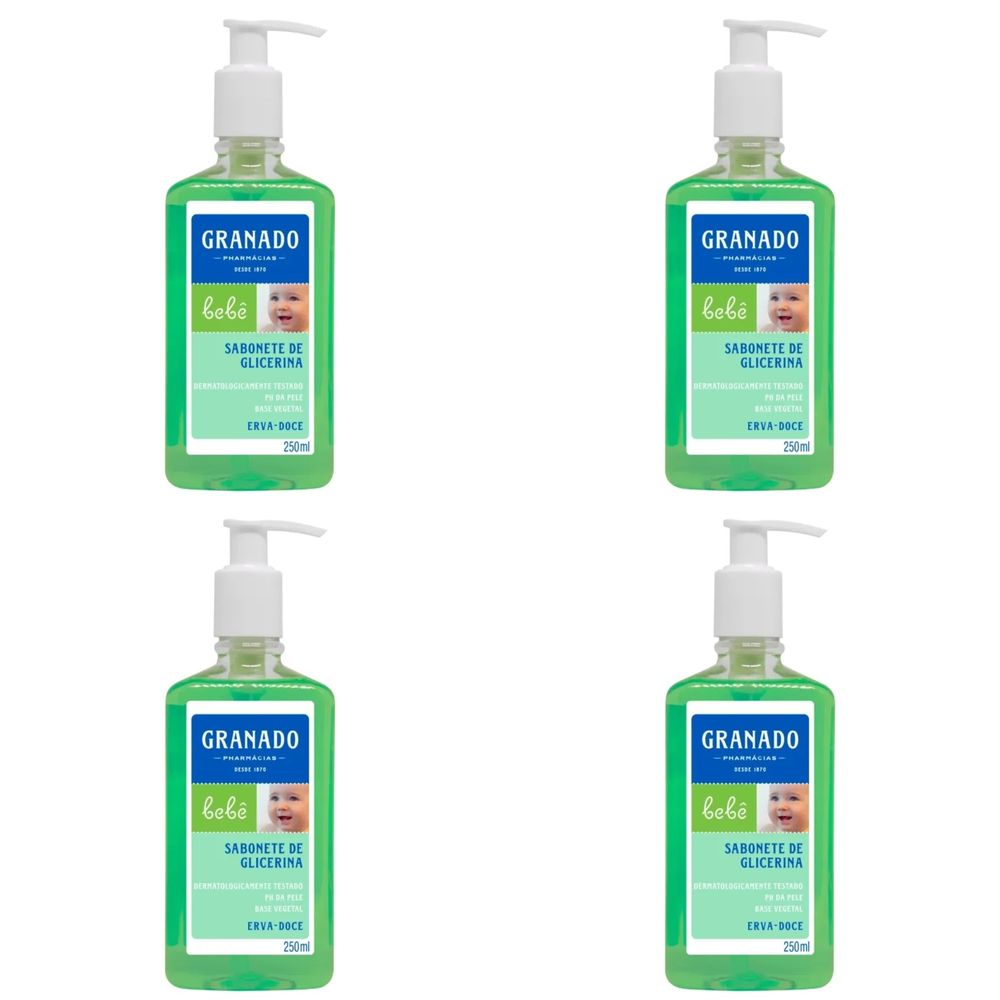 Kit c/4 Sabonetes Líquido Infantil Granado Bebê 250ml Erva Doce