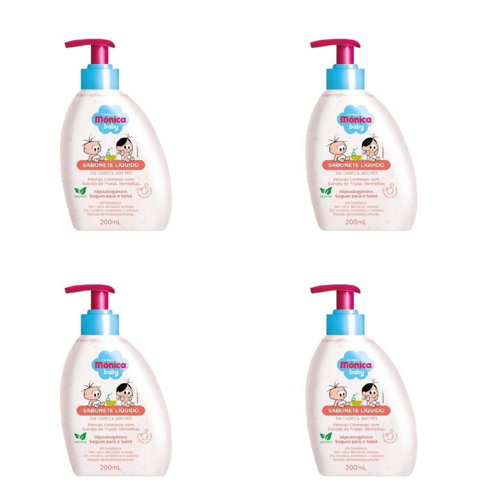 Kit c/4 Sabonetes Liquido Infantil Turma Da Mônica 200ml Perolado Frutas Vermelhas