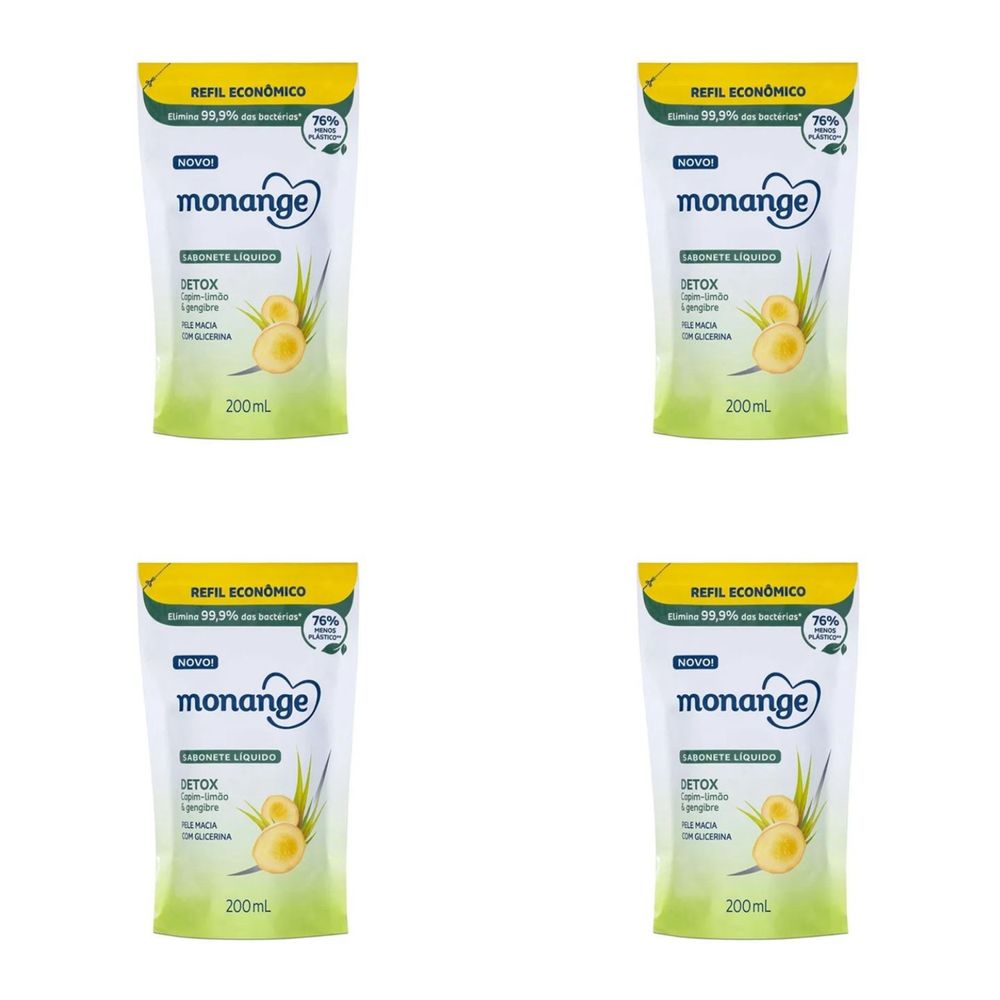 Kit c/4 Sabonetes Liquido Monange 200ml Refil Detox
