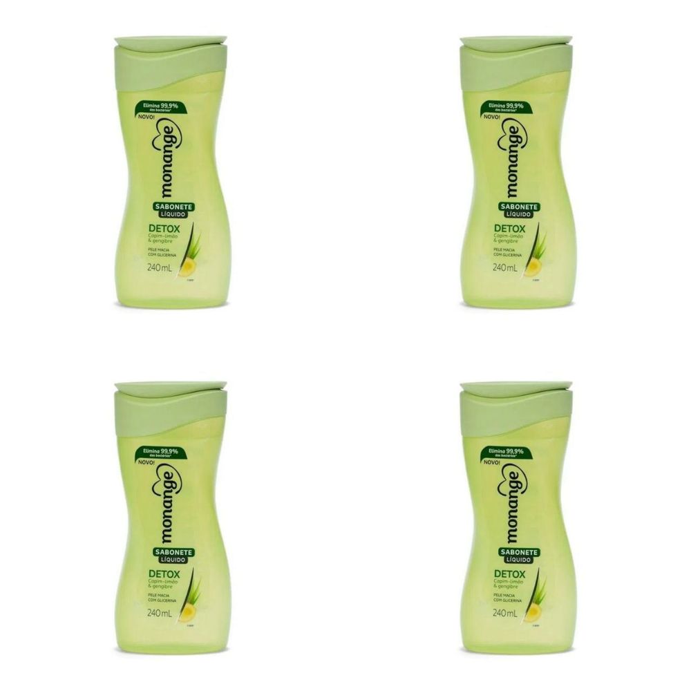 Kit c/4 Sabonetes Liquido Monange 240ml Detox