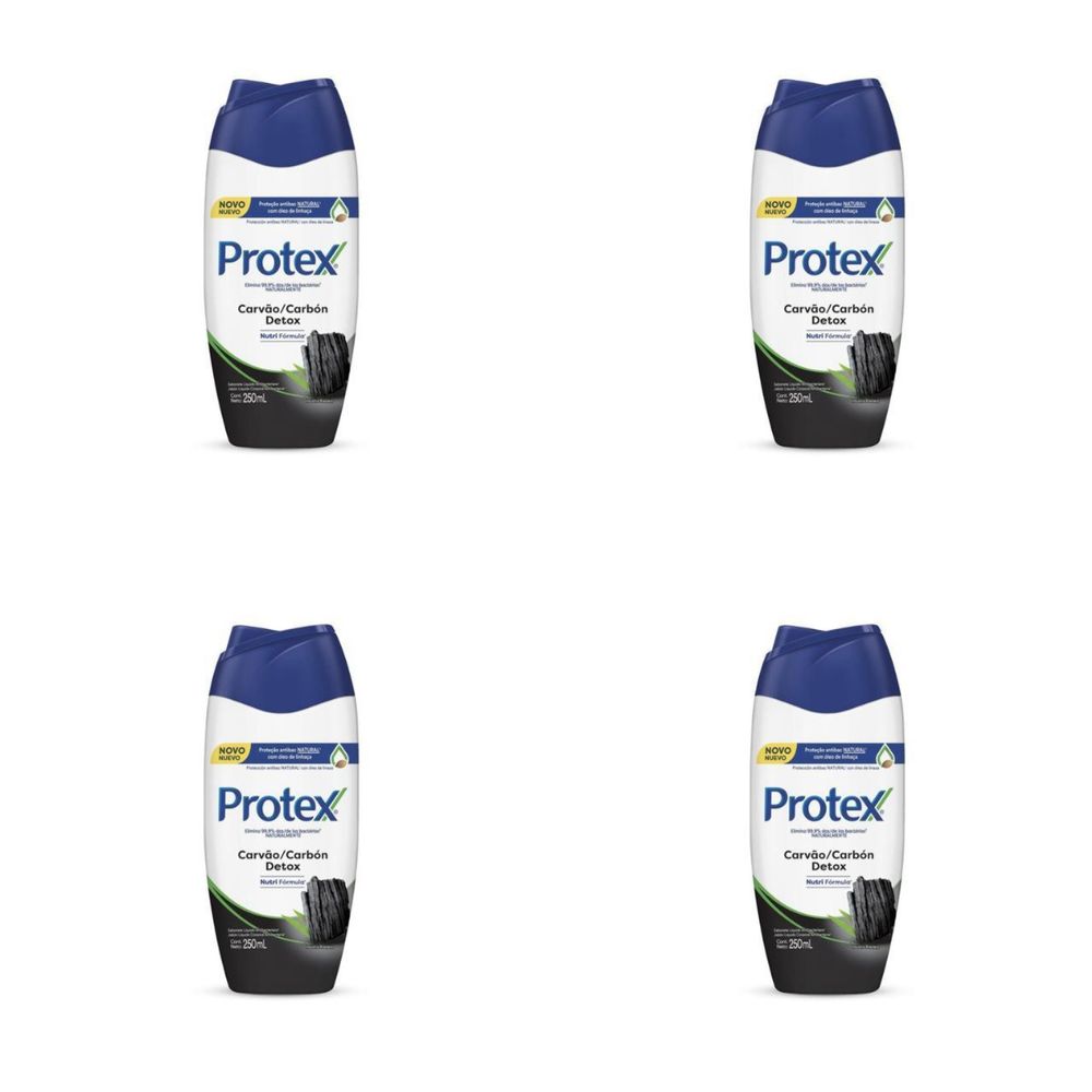 Kit c/4 Sabonetes Líquido Protex 250ml Carvão Detox