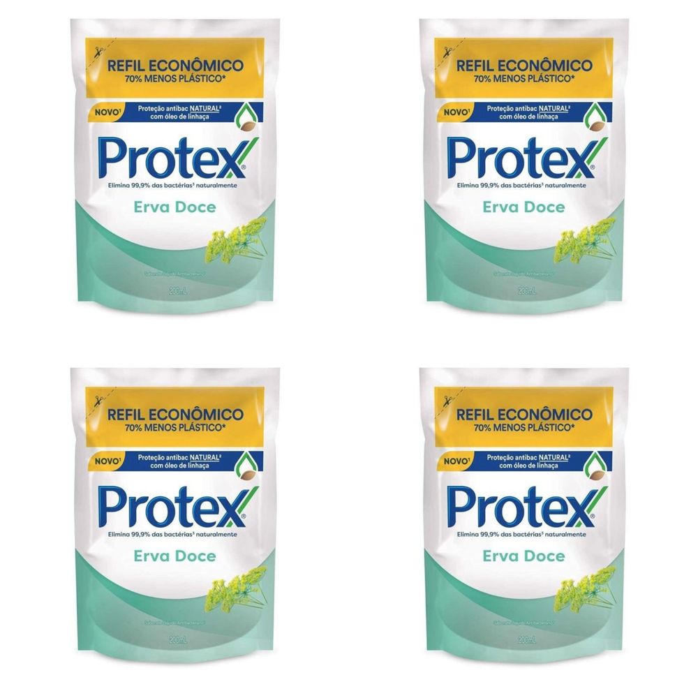 Kit c/4 Sabonetes Líquido Protex Refil 200ml Erva Doce