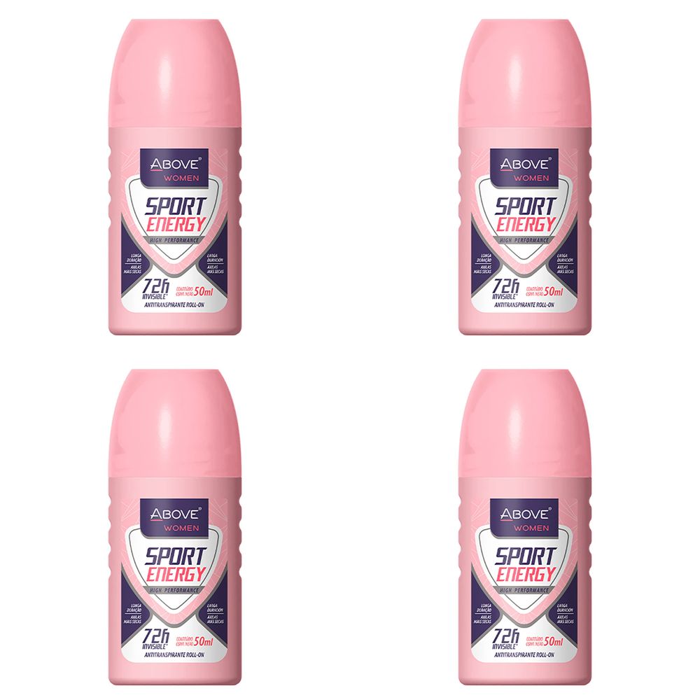 Kit c/4 Unidades de Desodorante Above Rollon Energy Women Sport 50ml
