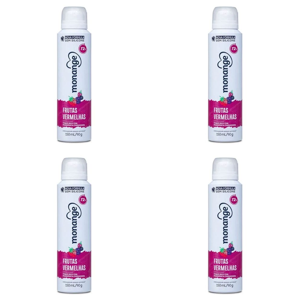 Kit c/4 Unidades de Desodorante Aero Monange 90g Frutas Vermelhas