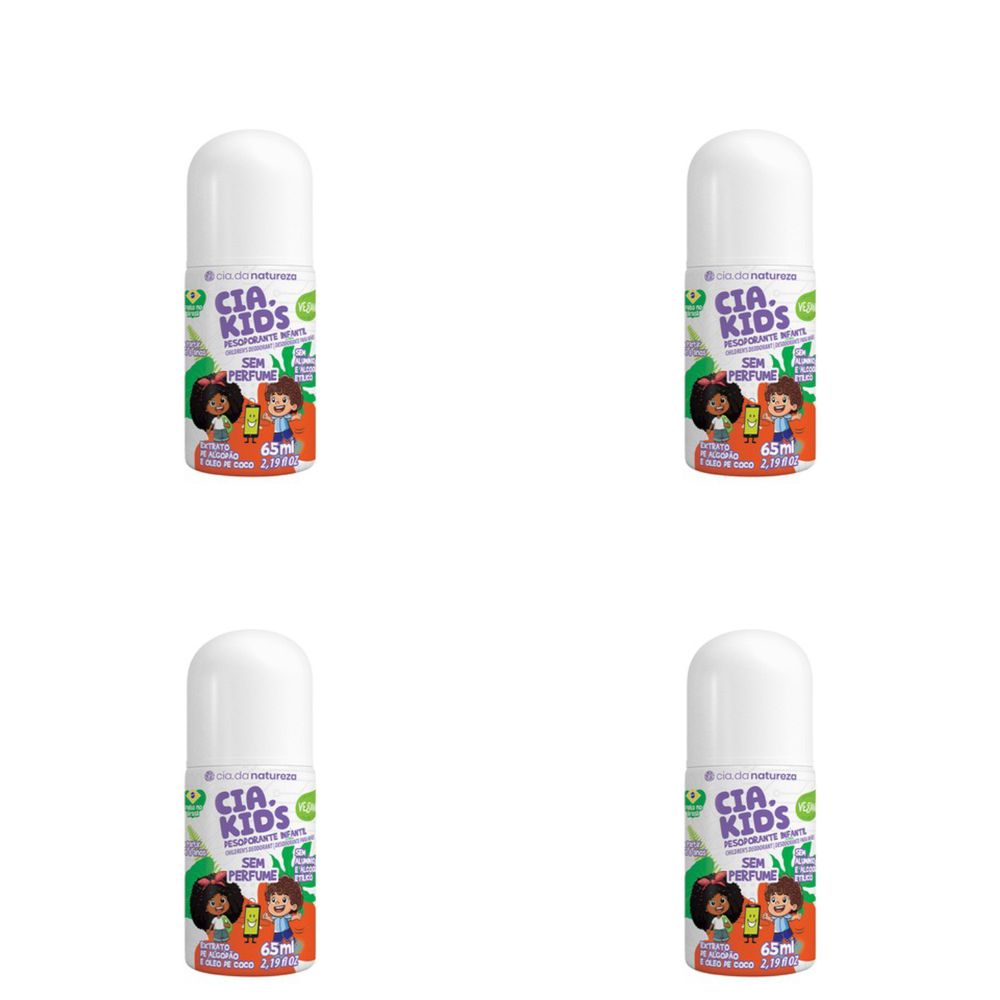 Kit c/4 Unidades de Desodorante Roll On Sem Perfume 65ml