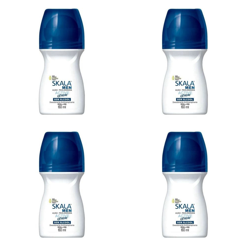 Kit c/4 Unidades de Desodorante Rollon Skala 60ml For Men Active Extreme