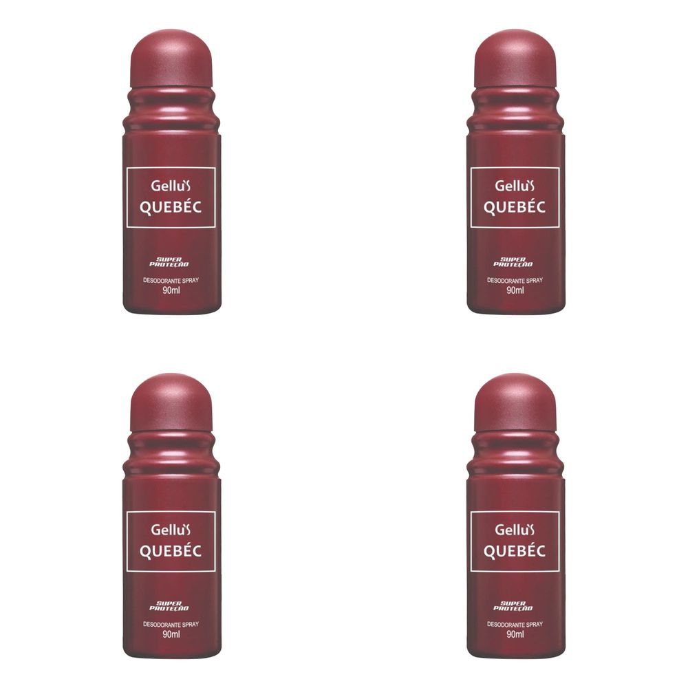Kit c/4 Unidades de Desodorante Spray Gellus 90ml Quebec