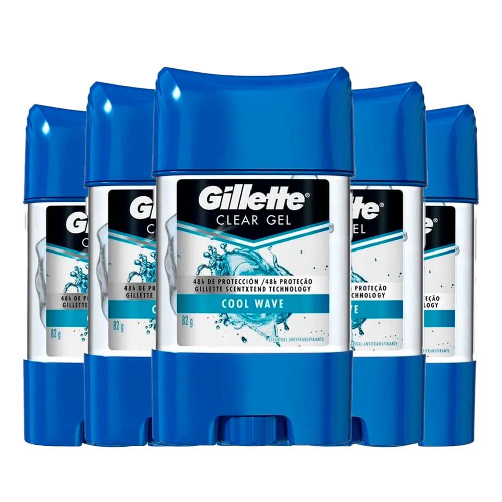 Kit c/5 Unidades de Desodorante Stick Gillet Clear Gel Cool Wave 82g