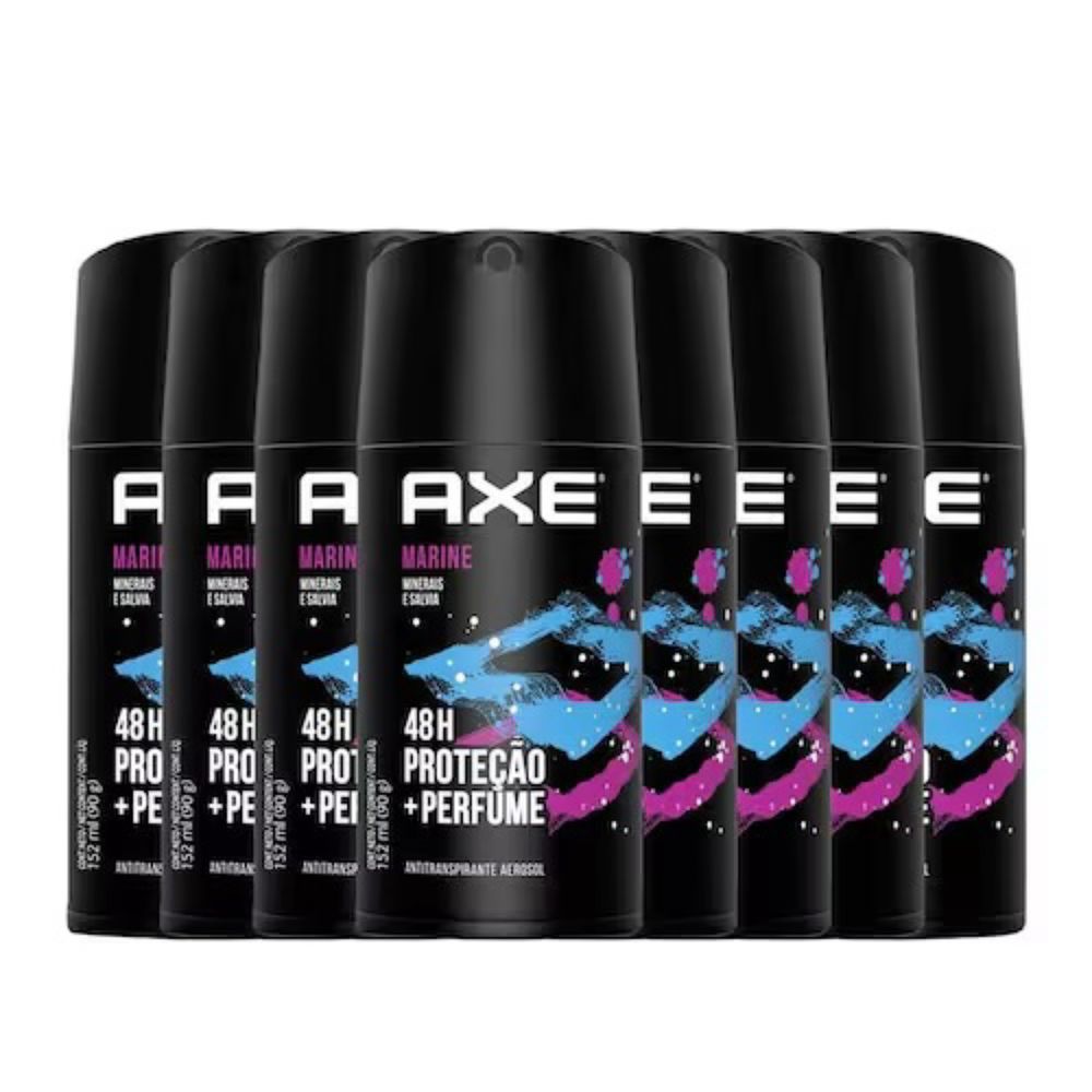 Kit c/8 Unidades de Desodorante Antitranspirante Aerosol Axe Marine 90g