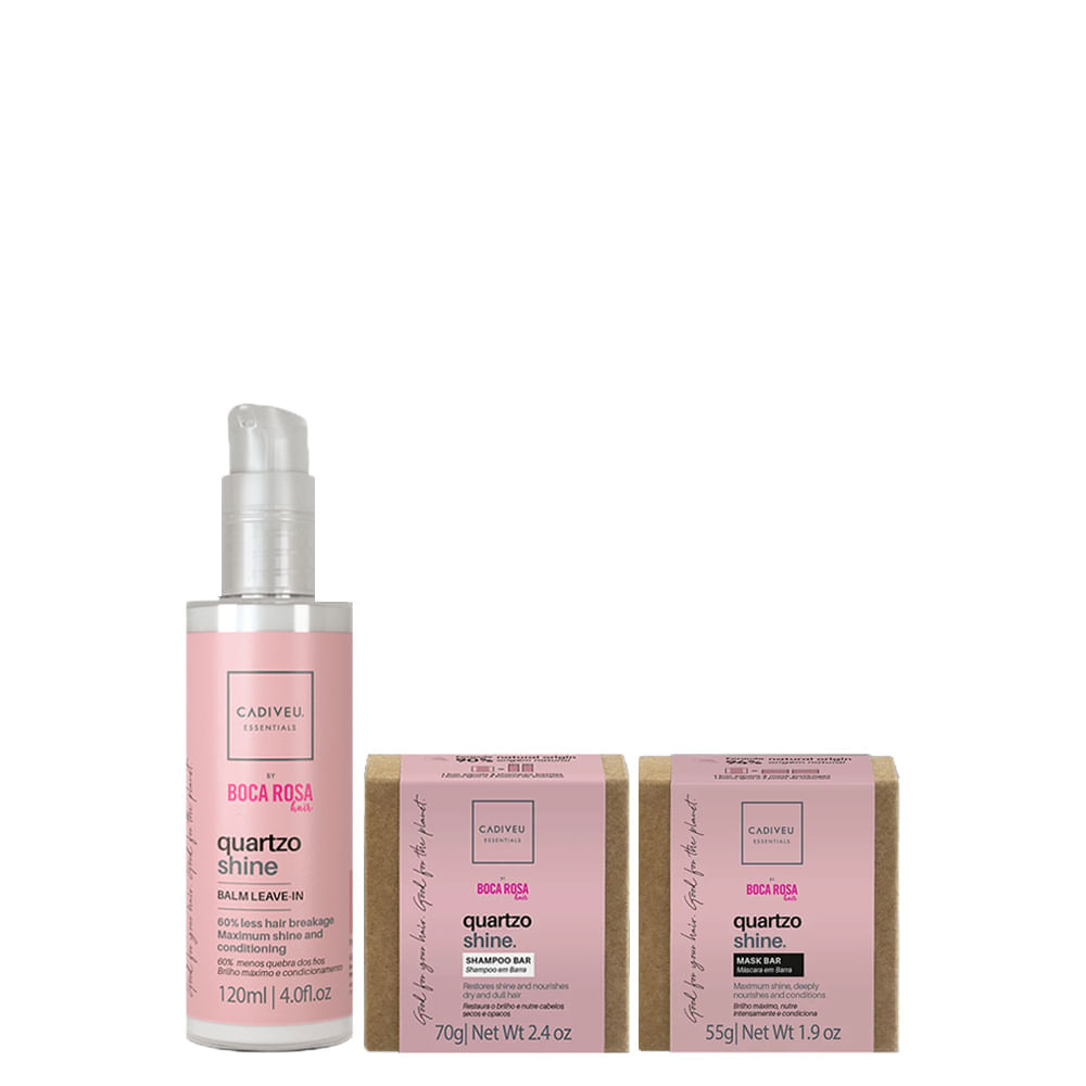 Kit Cadiveu Essentials Quartzo Shine - Shampoo em Barra 70 g + Máscara de Nutrição em Barra 55 g + Leave-in 120 ml - Kit Cadiveu Essentials Quartzo Shine - Shampoo em Barra 70 g + Máscara de Nutrição em Barra 55 g + Leave-in 120 ml