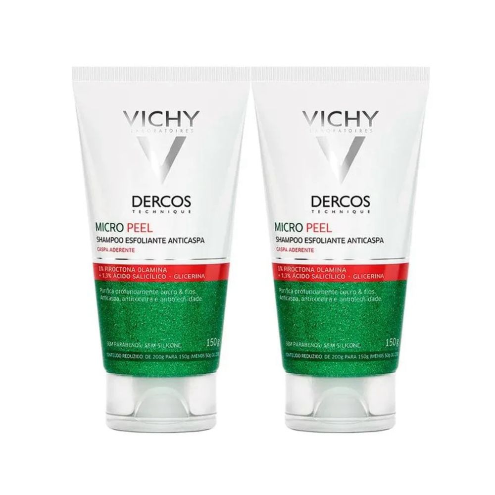 Kit com 2 Unidades de Dercos Micro Peel Shampoo Esfoliante Anticaspa Vichy 150ml