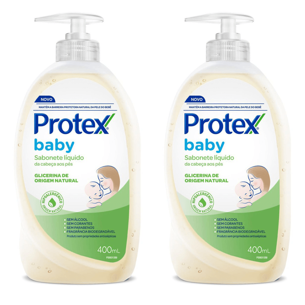 Kit com 2 Unidades de Sabonete Líquido da Cabeça aos Pés Glicerina Protex Baby Frasco 400ml