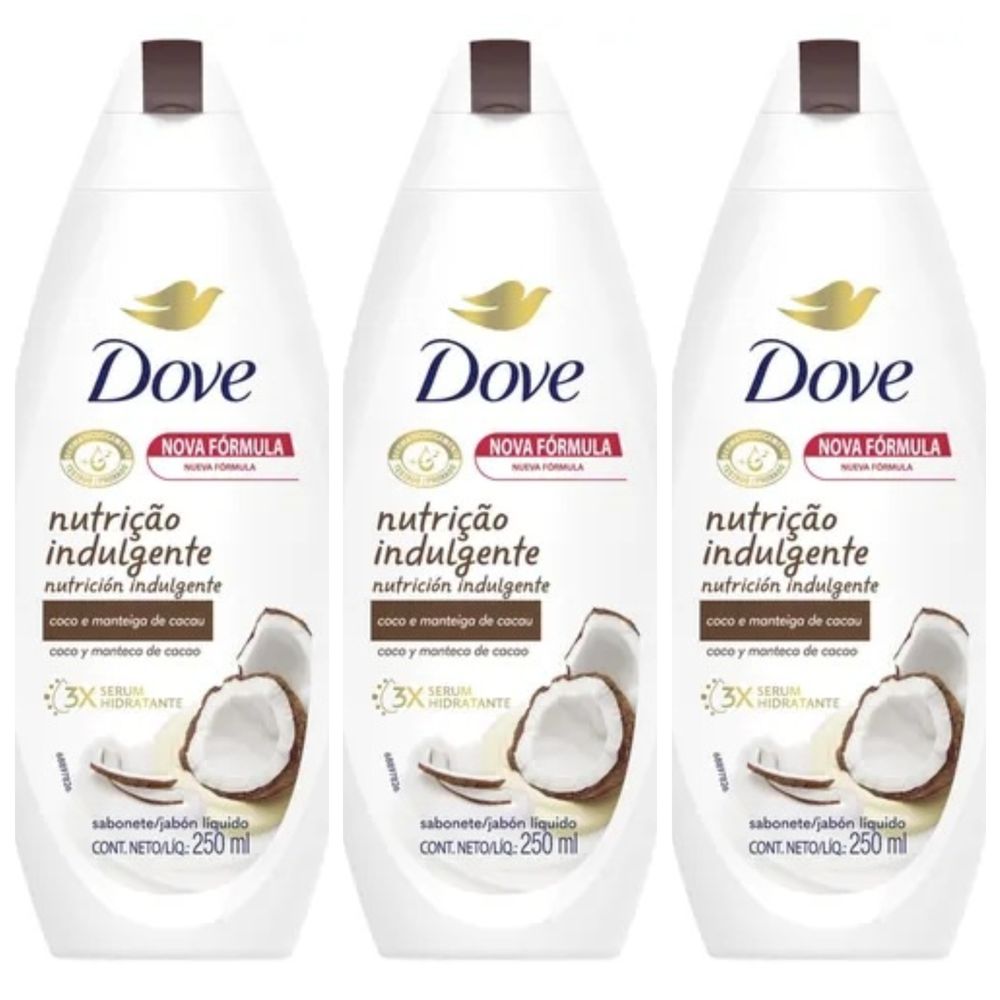 Kit com 3 Unidades de Dove Sabonete Líquido Coco e Manteiga de Cacau 250ml