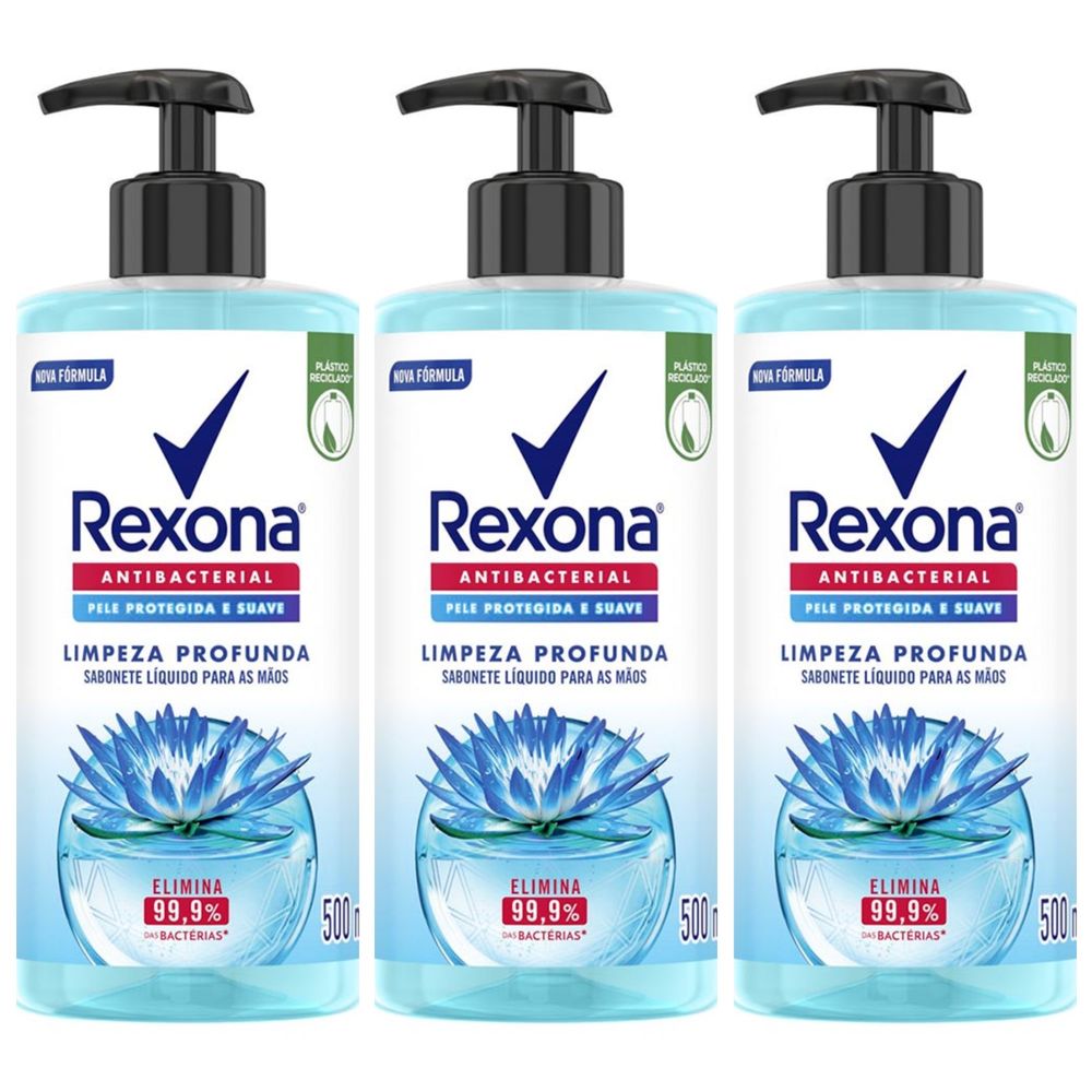 Kit com 3 Unidades de Rexona Sabonete Líquido Limpeza Profunda 500Ml