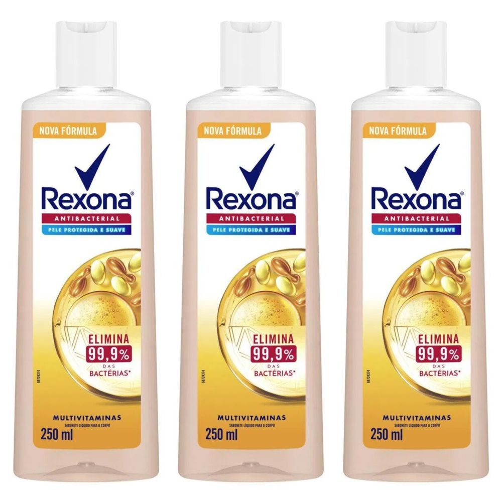 Kit com 3 Unidades de Rexona Sabonete Líquido Multivitaminas 250Ml