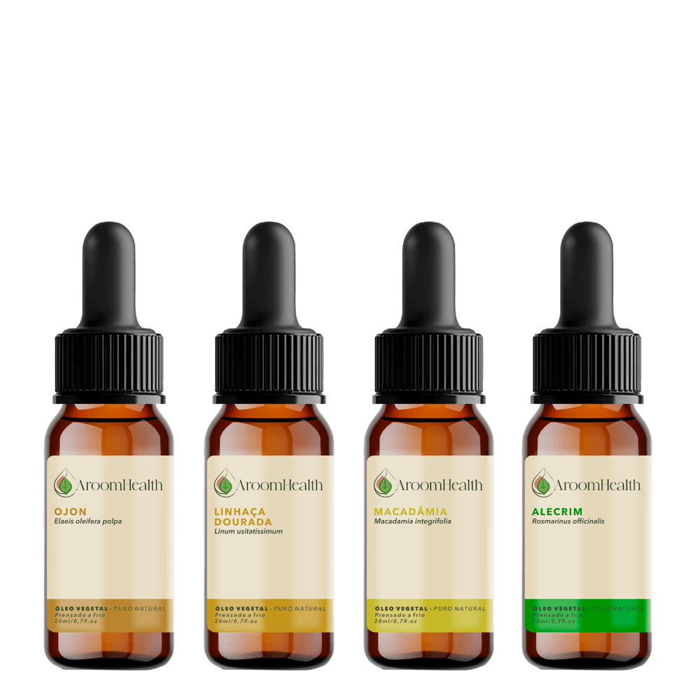 Kit de Óleos vegetais – Ojon Polpa, Linhaça Dourada, Macadâmia e Alecrim – 20 ml cada